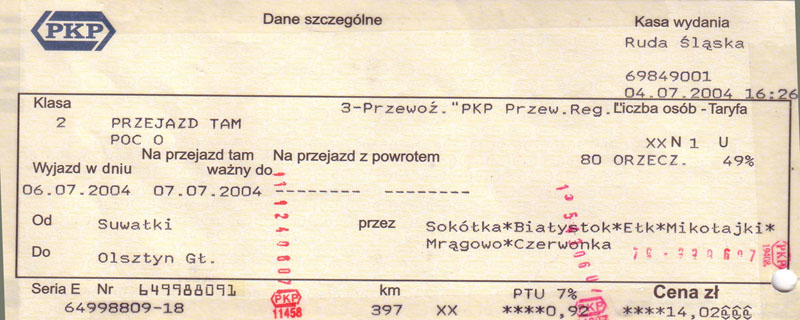 Tym razem przygotowaliśmy profesjonalny raport podróży, z rozkładem jazdy poszczególnych pociągów, namiarami na lok, który ciągnął skład i innymi takimi. Prosiliśmy dyżurnych na stacjach gdzie mieliśmy przesiadkę by zapodali swoją pieczątkę, oraz kierowników i konduktorów pociągów, by przywalili z kasownika w naszej dokumentacji. W archiwum zachowały się również bilety z podróży.