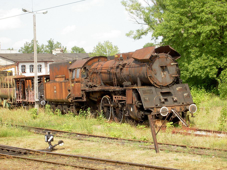 Stare wagony i lokomotywy na bocznicy w Ełku